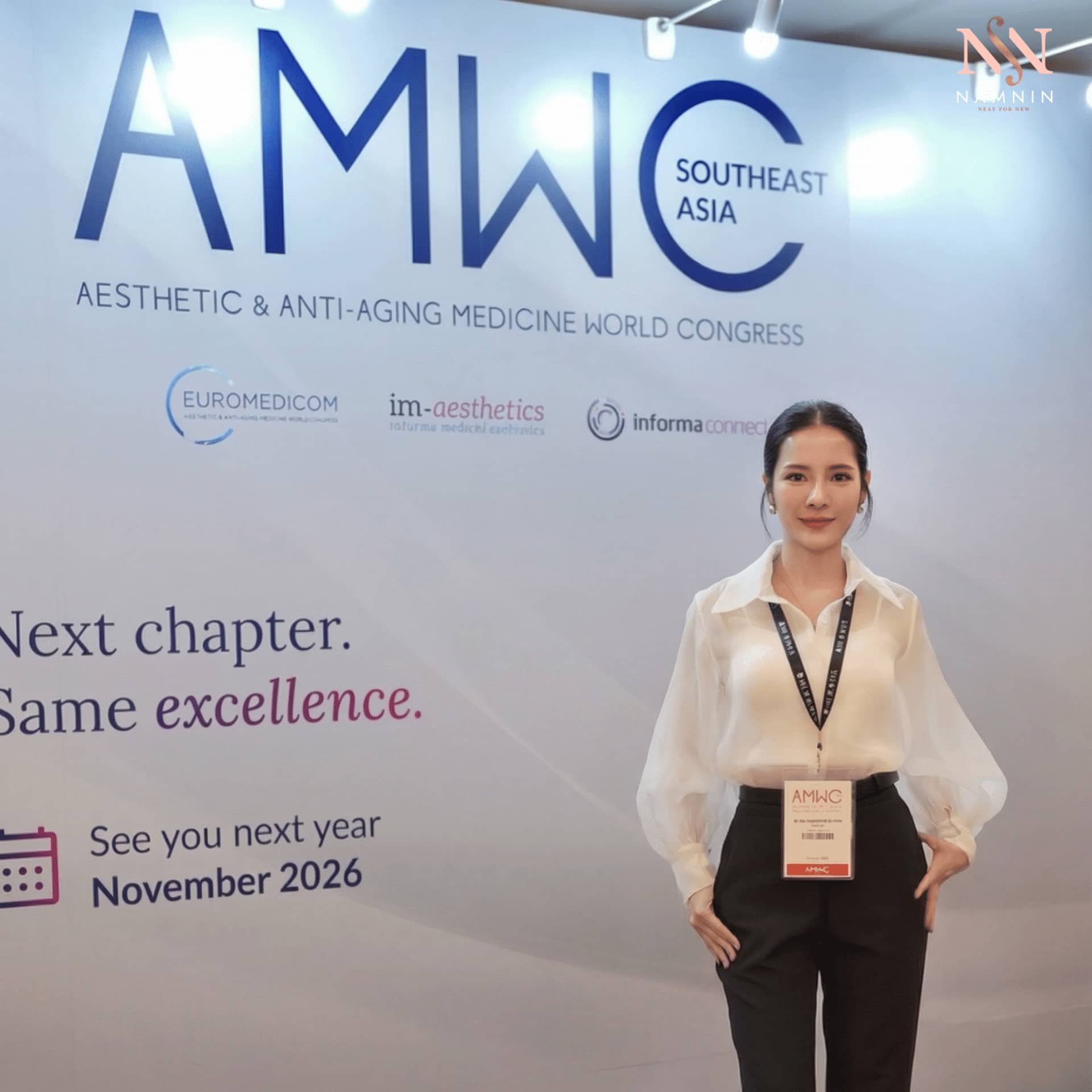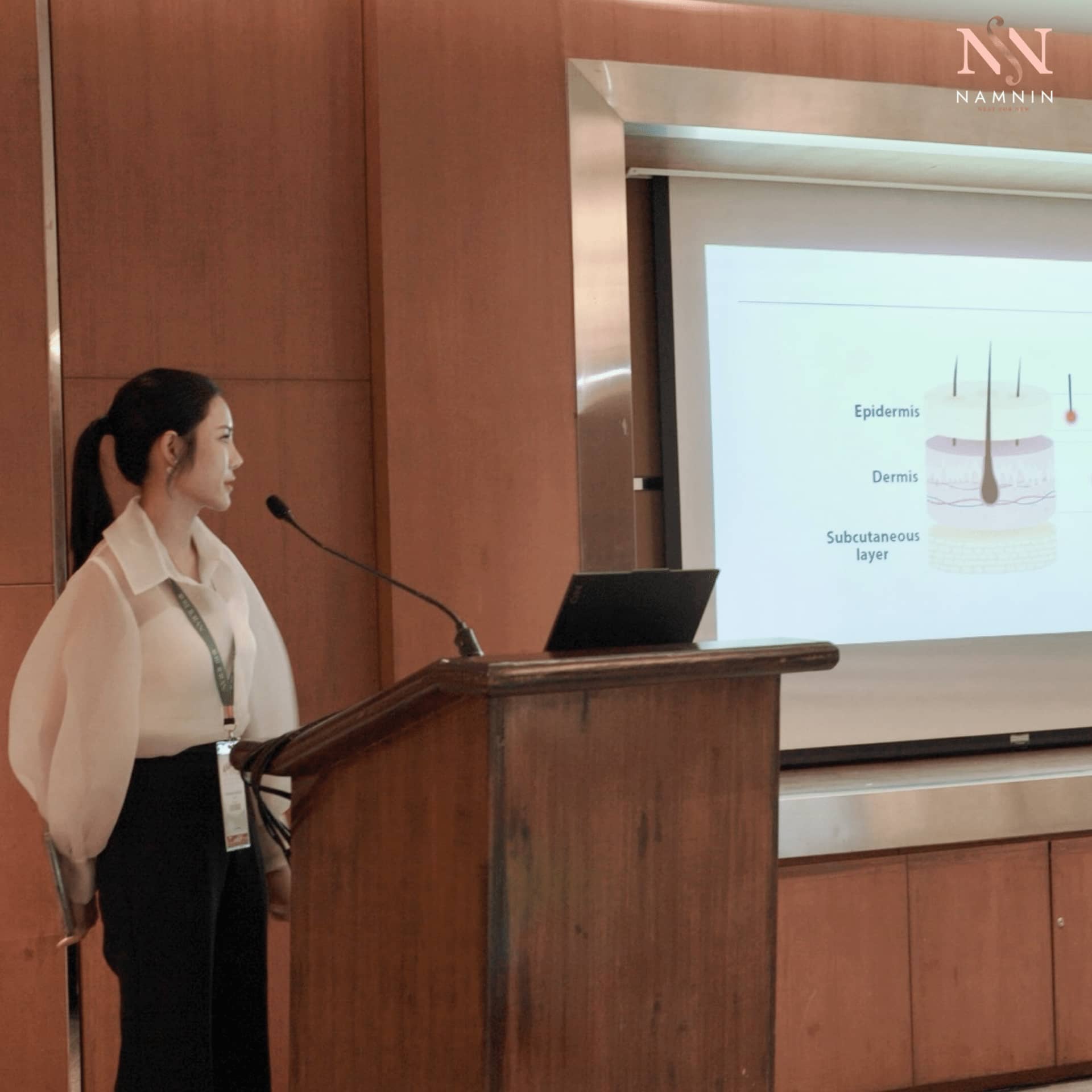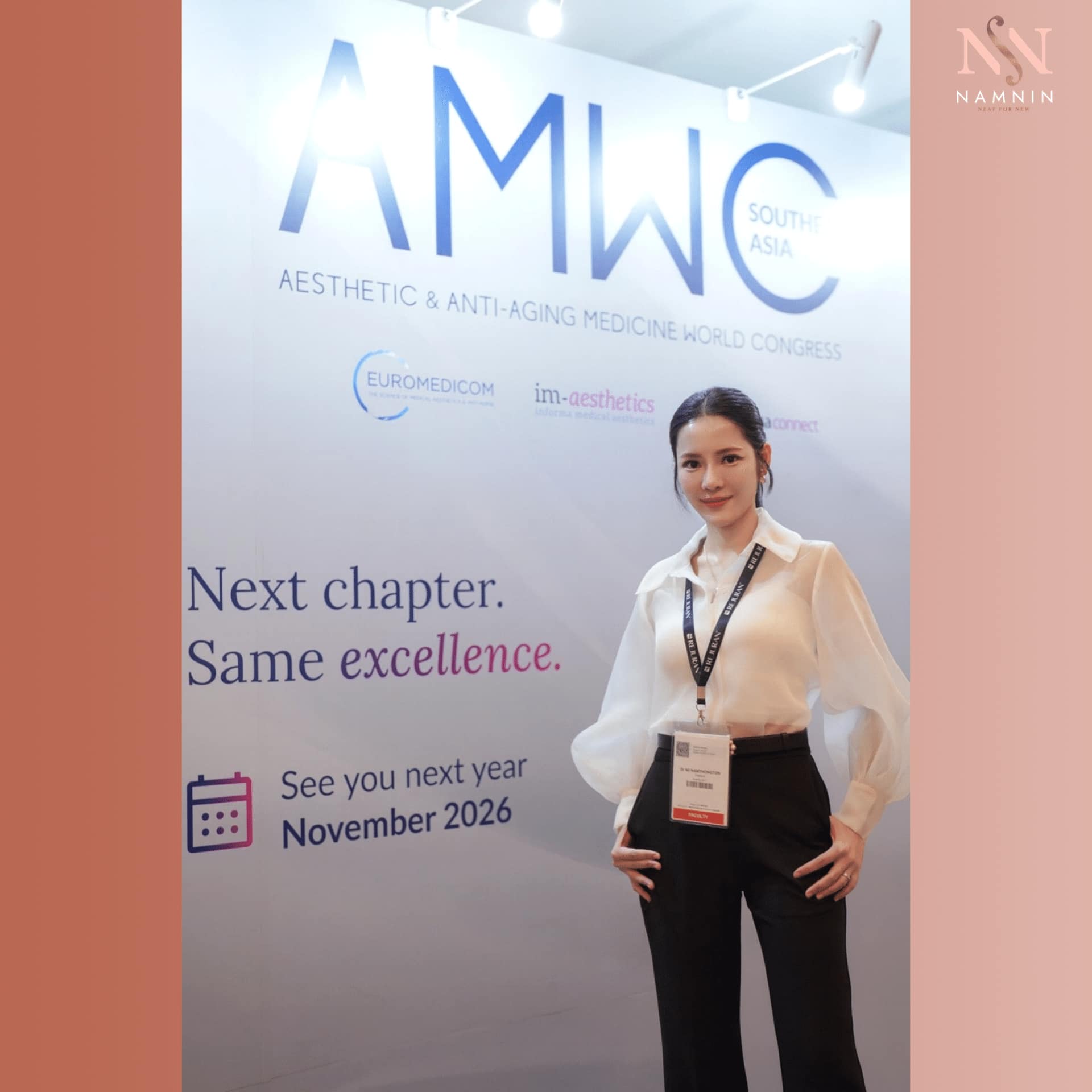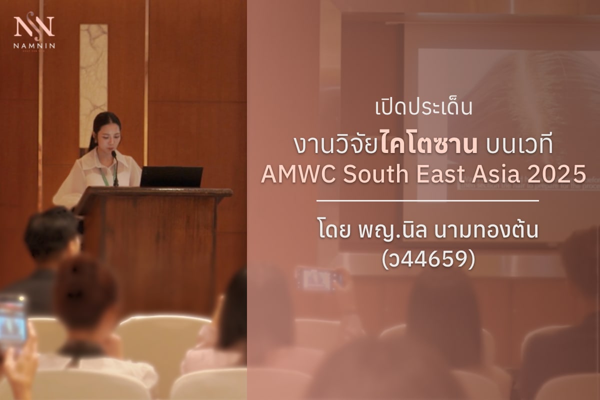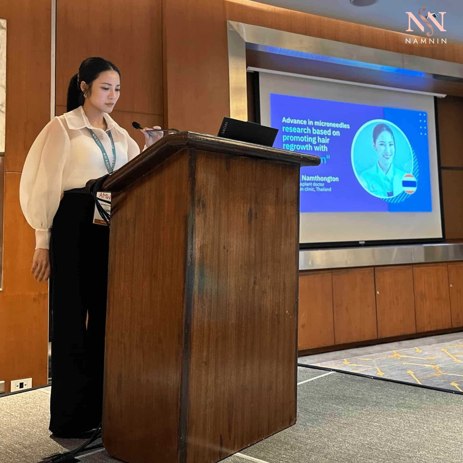 คุณหมอนินร่วมบรรยายวิชาการ ในหัวข้อ “Advance in Microneedles Research Based on Promoting Hair Regrowth with Chitosan” ในงานประชุม AMWC South East Asia วันที่ 20 พฤศจิกายน 2568