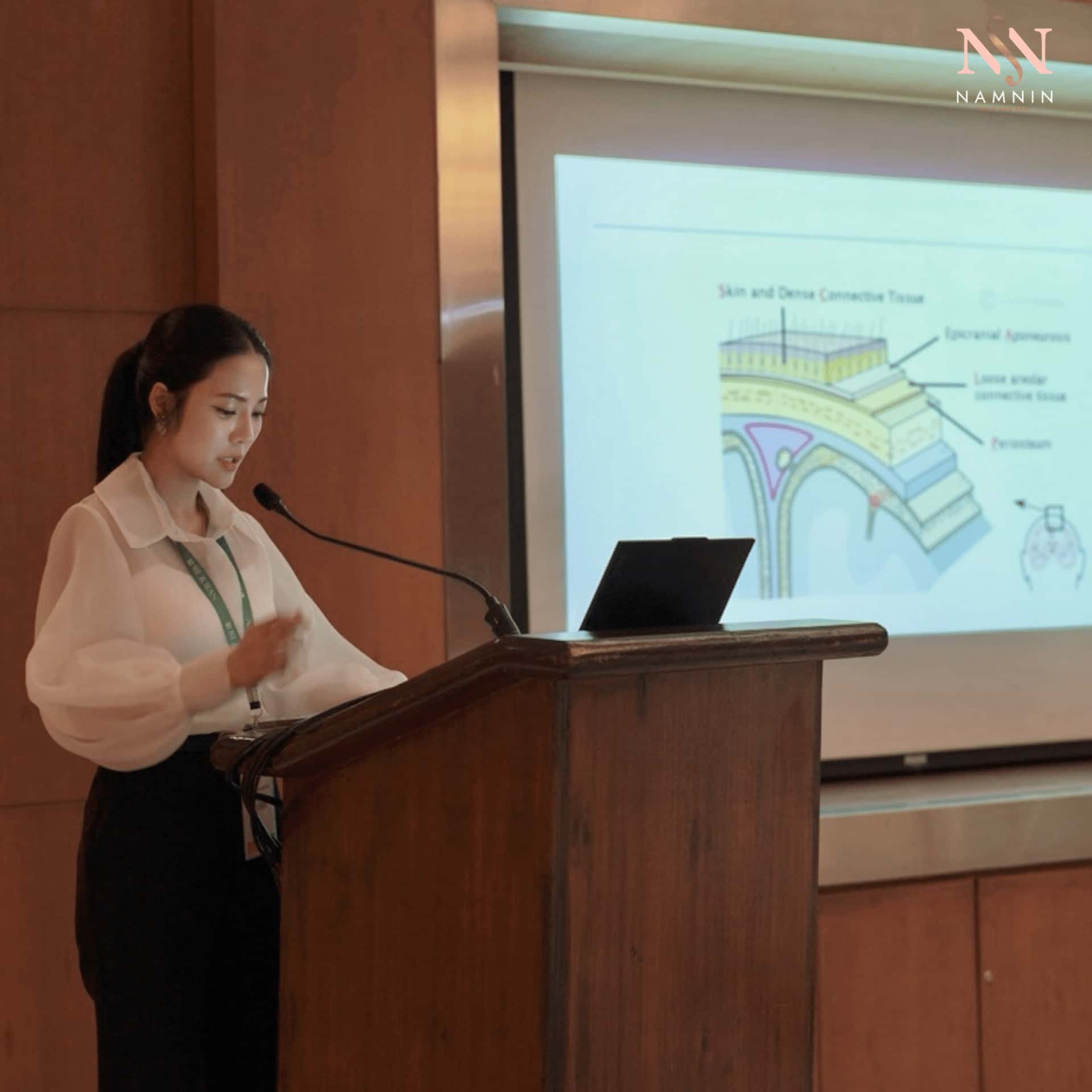 ภายในงาน คุณหมอนินได้นำเสนอข้อมูลจากผลการวิจัยเกี่ยวกับการใช้ ไคโตซานซึ่งเป็นสารสกัดจากธรรมชาติที่ถูกนำมาพัฒนาเป็นอีกหนึ่งทางเลือกในการส่งเสริมการงอกของเส้นผม งานวิจัยดังกล่าวได้เปรียบเทียบผลลัพธ์กับการใช้ Minoxidil 5% และพบประเด็นที่น่าสนใจหลายด้าน ทั้งในเชิงประสิทธิภาพของสารและการประยุกต์ใช้ร่วมกับไมโครนีดเดิลเพื่อเพิ่มการซึมผ่านของสารสู่หนังศีรษะ ร่วมกับ Dr .Won Seok Choi ,Plastic Surgeon,South Korea .