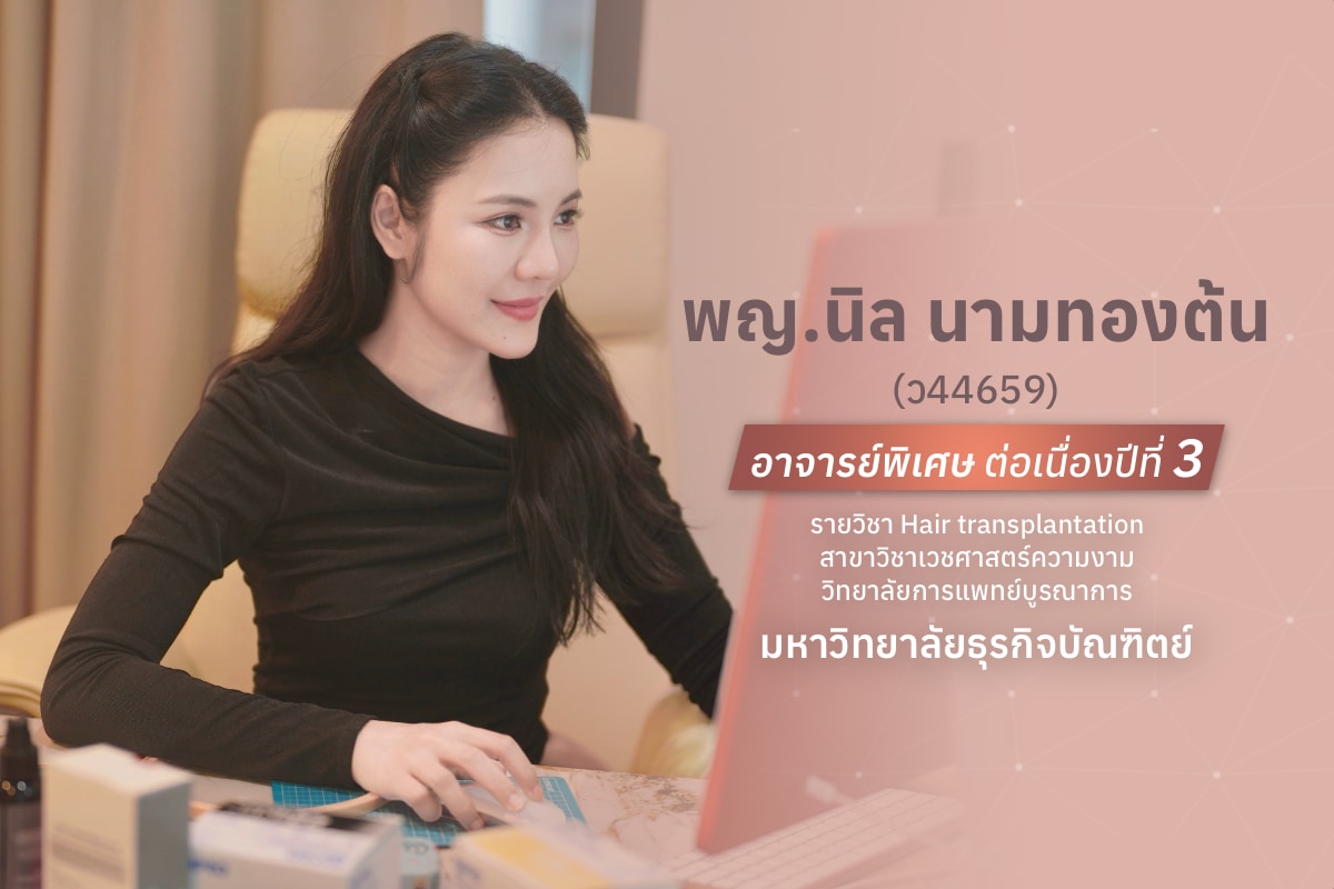 พญ.นิล นามทองต้น แพทย์ปลูกผมประจำนามนิน คลินิก และผู้พัฒนาเทคนิคการปลูกผมเทคนิค NEAT ได้รับเชิญให้ทำหน้าที่ "อาจารย์พิเศษต่อเนื่อง ปีที่ 3" สาขาวิชาเวชศาสตร์ความงาม  วิทยาลัยการแพทย์บูรณาการ  มหาวิทยาลัยธุรกิจบัณฑิตย์ #CIMw #DPU