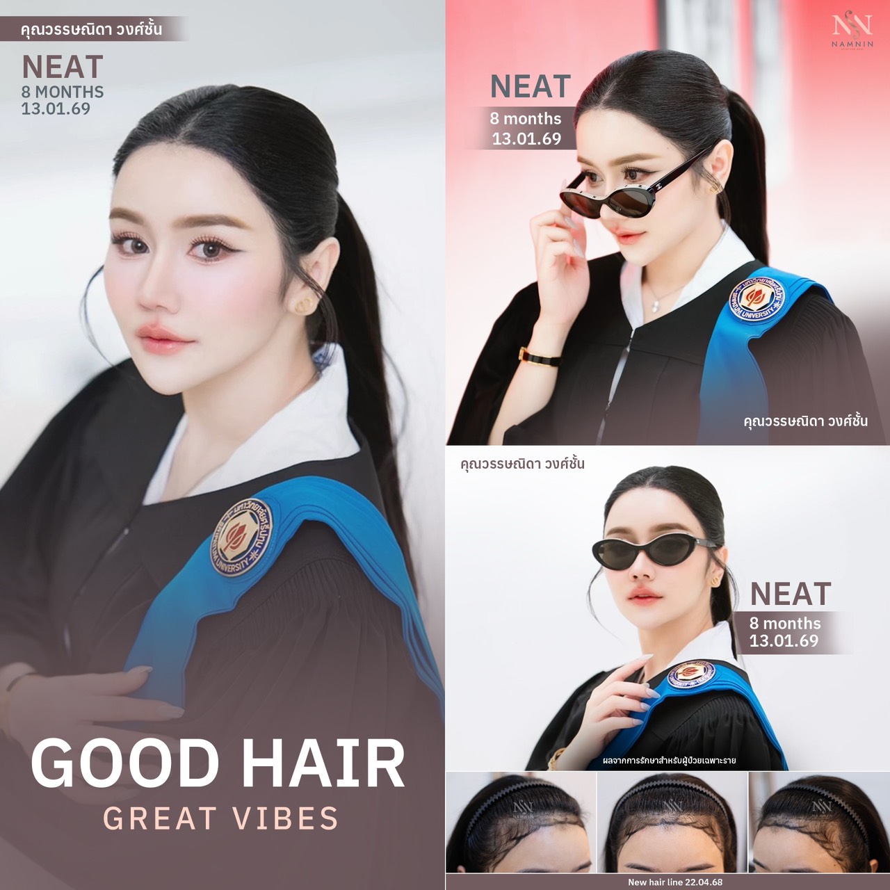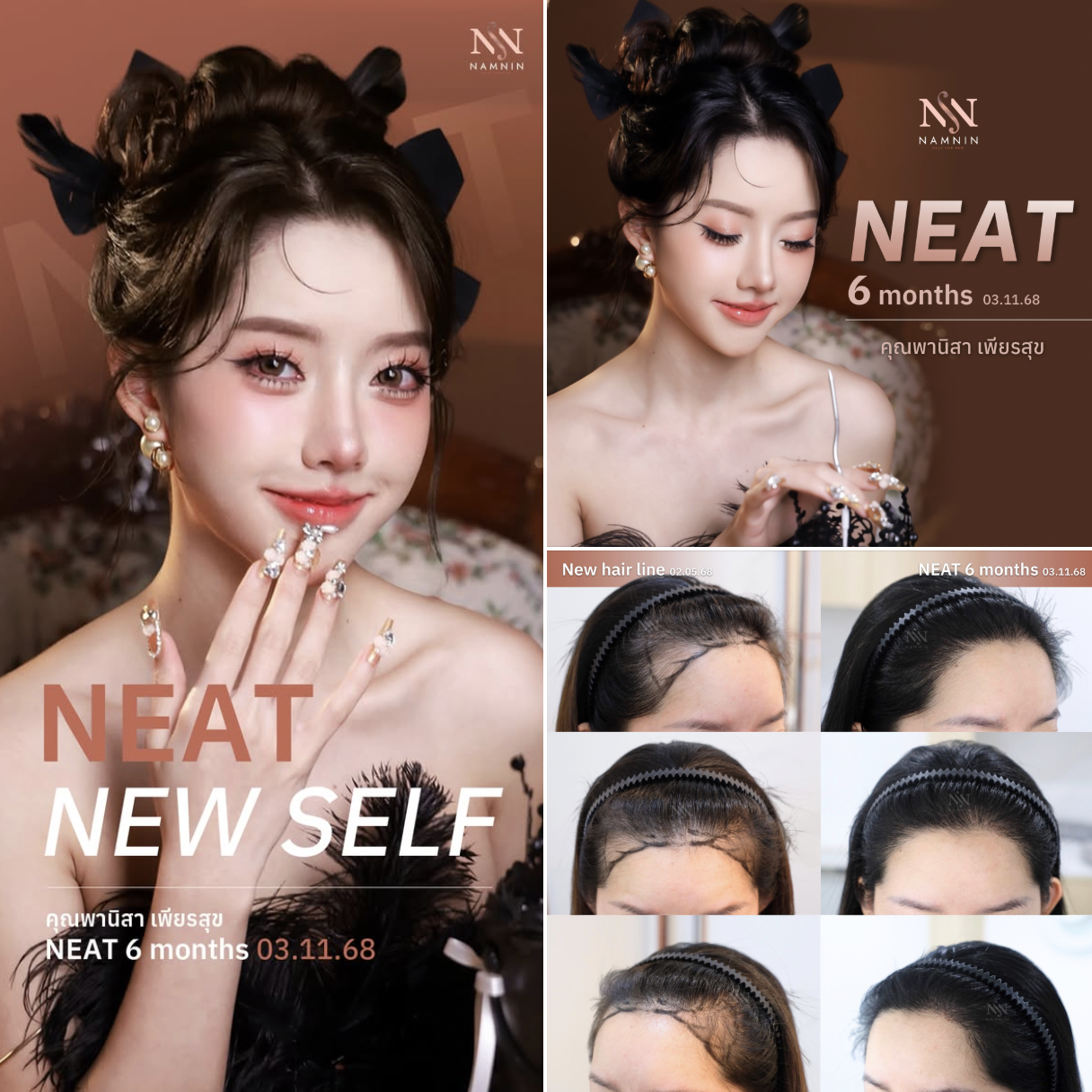 ที่นามนินคลินิก แนวคิดสำคัญคือการให้เวลากับ “การปรึกษาและวางแนวทางการดูแล” อย่างจริงจัง เพราะเข้าใจดีว่า สำหรับผู้หญิงคนหนึ่ง การตัดสินใจเลือกสิ่งที่ดีที่สุดให้กับกับตัวเองนั้นไม่ใช่เรื่องเล็ก การปลูกผมเทคนิค NEAT นั้นมีพื้นฐานมาจากความเข้าใจทุกความแตกต่างของผู้หญิง และตระหนักดีว่ารายละเอียดในทุกขั้นตอนนั้นเป็นเรื่องสำคัญ โดยเฉพาะการออกแบบแนวผม ซึ่งเป็นศาสตร์ที่ผสานทั้งความรู้ทางการแพทย์และความละเอียดอ่อนเชิงศิลปะ เพราะแนวผมที่สวยงามไม่ได้วัดเพียงความหนาแน่น แต่ต้องพิจารณาโครงสร้างใบหน้า สัดส่วนหน้าผาก แนวคิ้ว รวมถึงบุคลิกของผู้หญิงแต่ละคนร่วมด้วย