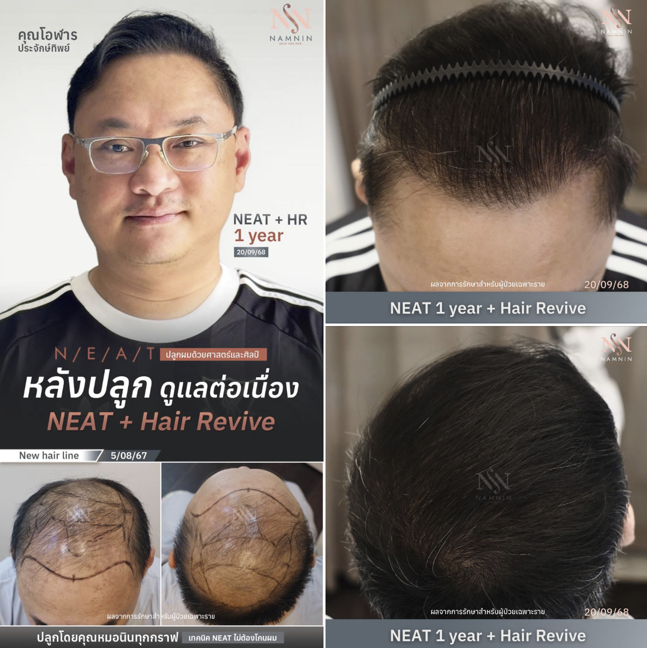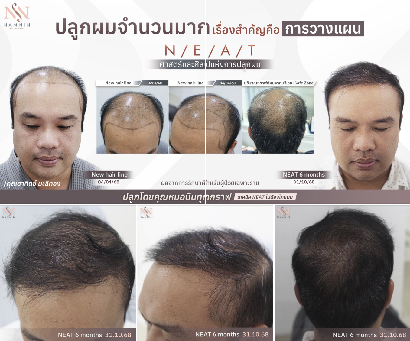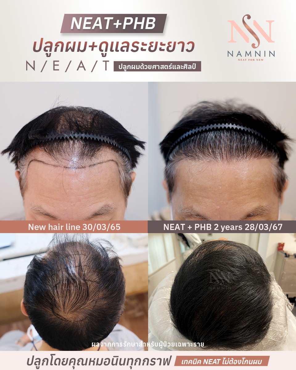 การปลูกผมเทคนิค NEAT เน้นความละเอียดและการออกแบบเฉพาะบุคคล แพทย์จะประเมินจำนวนกราฟต์อย่างเหมาะสม ใช้ Implanter ขนาด 0.60 มิลลิเมตร ปลูกผมทีละกราฟต์ พร้อมจัดทิศทางให้กลมกลืนกับเส้นผมเดิม เพื่อให้แนวผมใหม่ดูเป็นธรรมชาติ สอดคล้องกับช่วงวัยและบุคลิกภาพ เพราะการปลูกผมไม่ใช่เพียงการเพิ่มจำนวนเส้นผม แต่คือการออกแบบภาพลักษณ์ที่สะท้อนตัวตนของแต่ละคนอย่างกลมกลืน