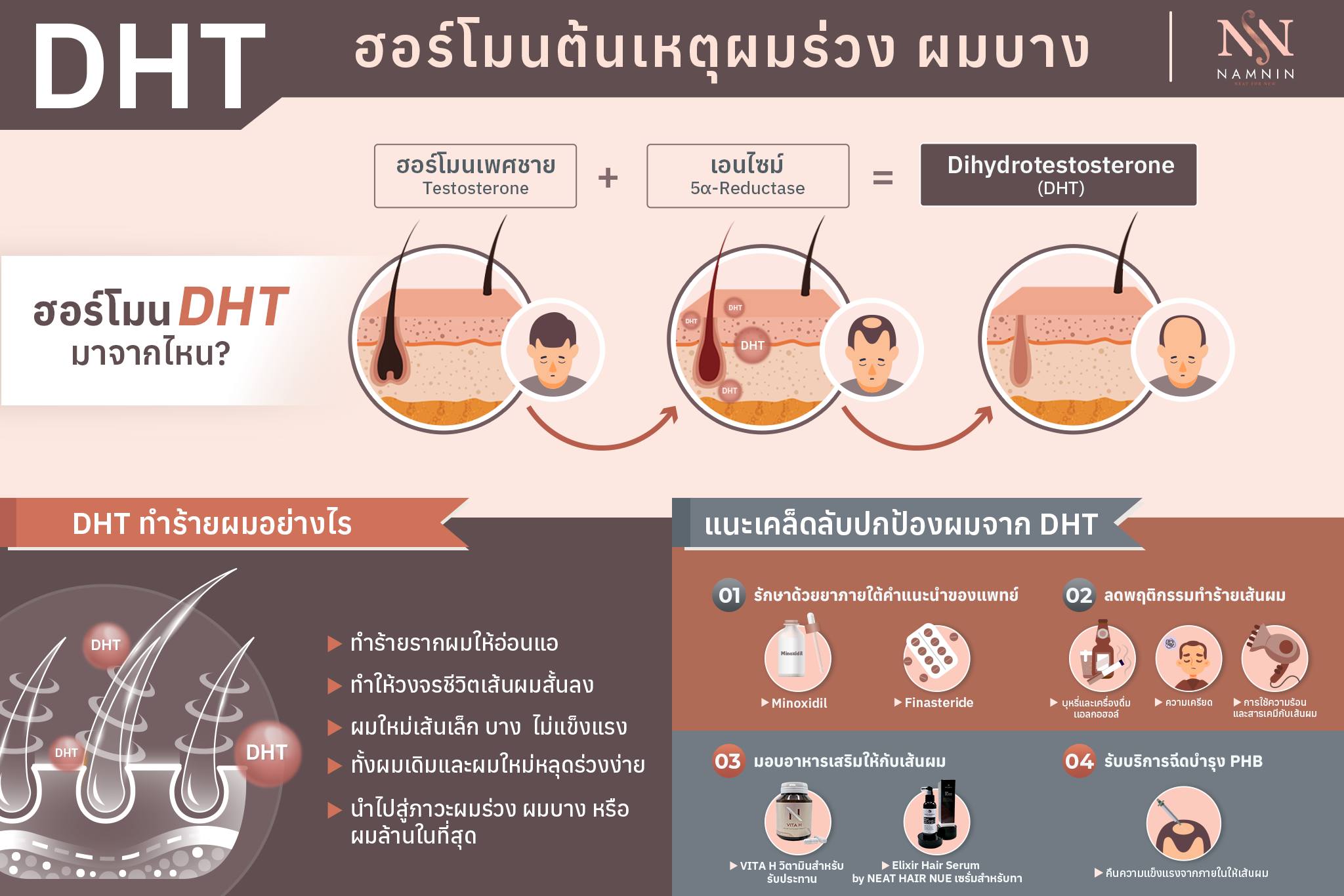 แม้พันธุกรรมจะเป็นพื้นฐานสำคัญ แต่ปัจจัยในชีวิตประจำวัน เช่น ความเครียด การพักผ่อนไม่เพียงพอ ภาวะโภชนาการ หรือโรคประจำตัว ก็อาจมีส่วนเร่งให้ผมบางชัดเจนขึ้นได้เช่นกัน ด้วยเหตุนี้ การทำความเข้าใจกลไกของฮอร์โมนจึงเป็นก้าวแรกที่สำคัญ ก่อนพิจารณาแนวทางดูแลที่เหมาะสม ไม่ว่าจะเป็นการใช้ยา การเสริมวิตามิน หรือการปลูกผม ทุกวิธีล้วนมีแนวทางการรักษาที่แตกต่างกัน ซึ่งไม่มีวิธีใดถูกหรือผิด เพียงแต่ต้องเลือกให้เหมาะสมกับปัญหาที่สุด