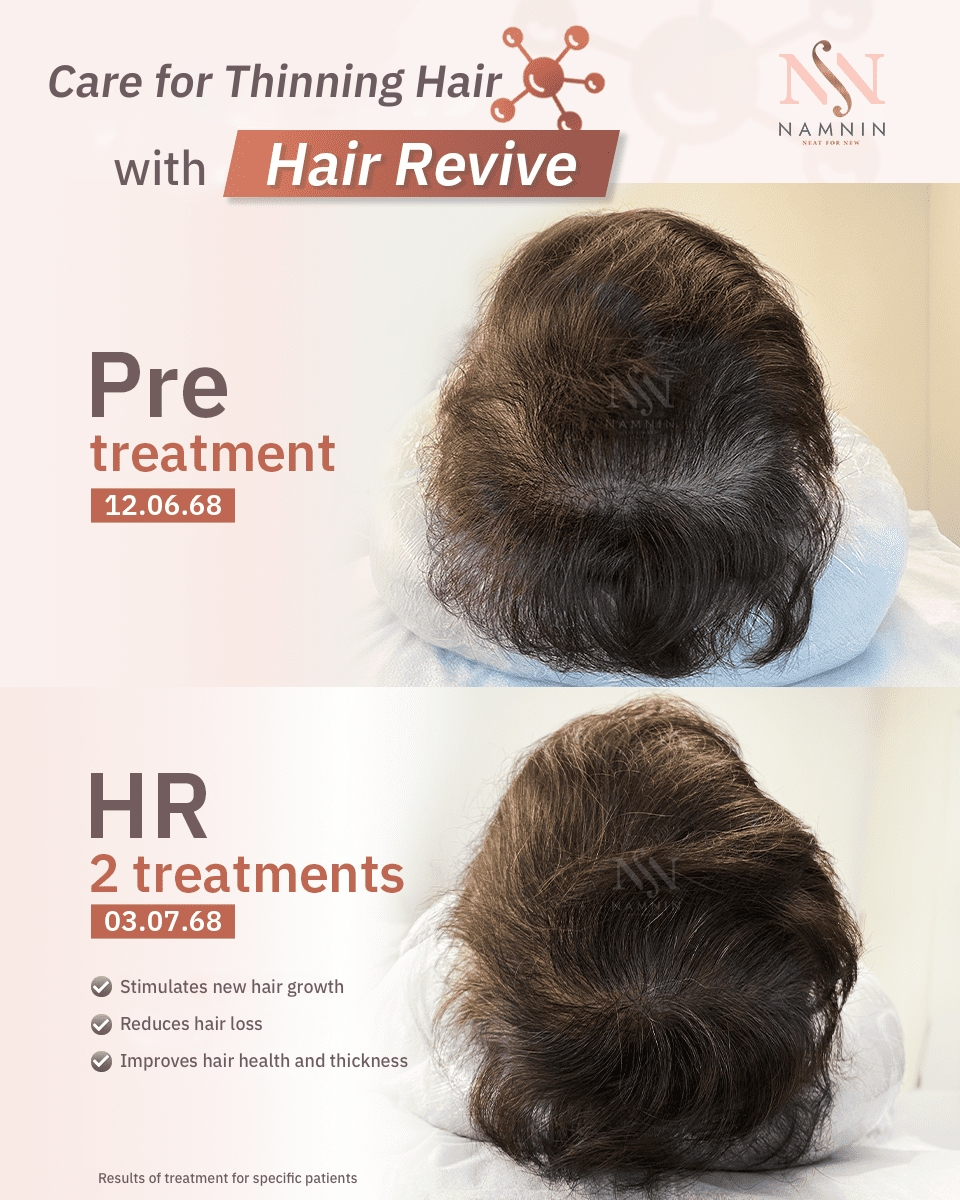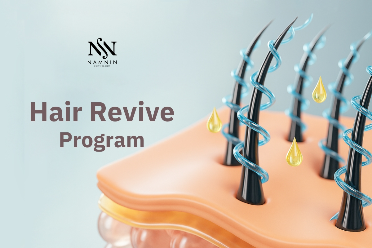 Discover the new Hair Revive Program from Namnin Clinic, designed especially for those who want to address hair loss and thinning hair. This program is the right choice for scalp care, helping reduce hair shedding and stimulating new hair growth. It combines natural extracts with essential nutrients that work together to enhance the health of both hair and scalp.