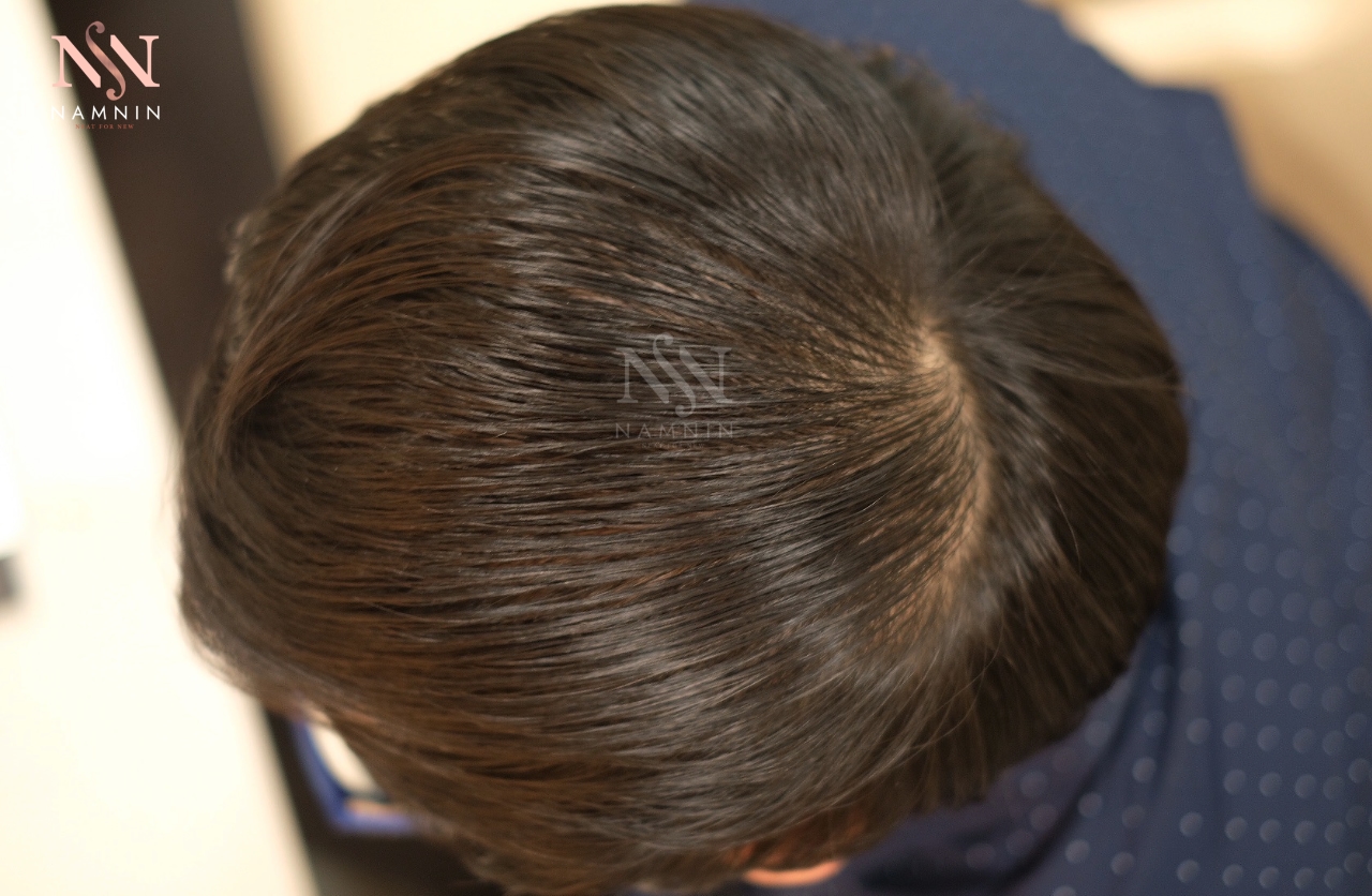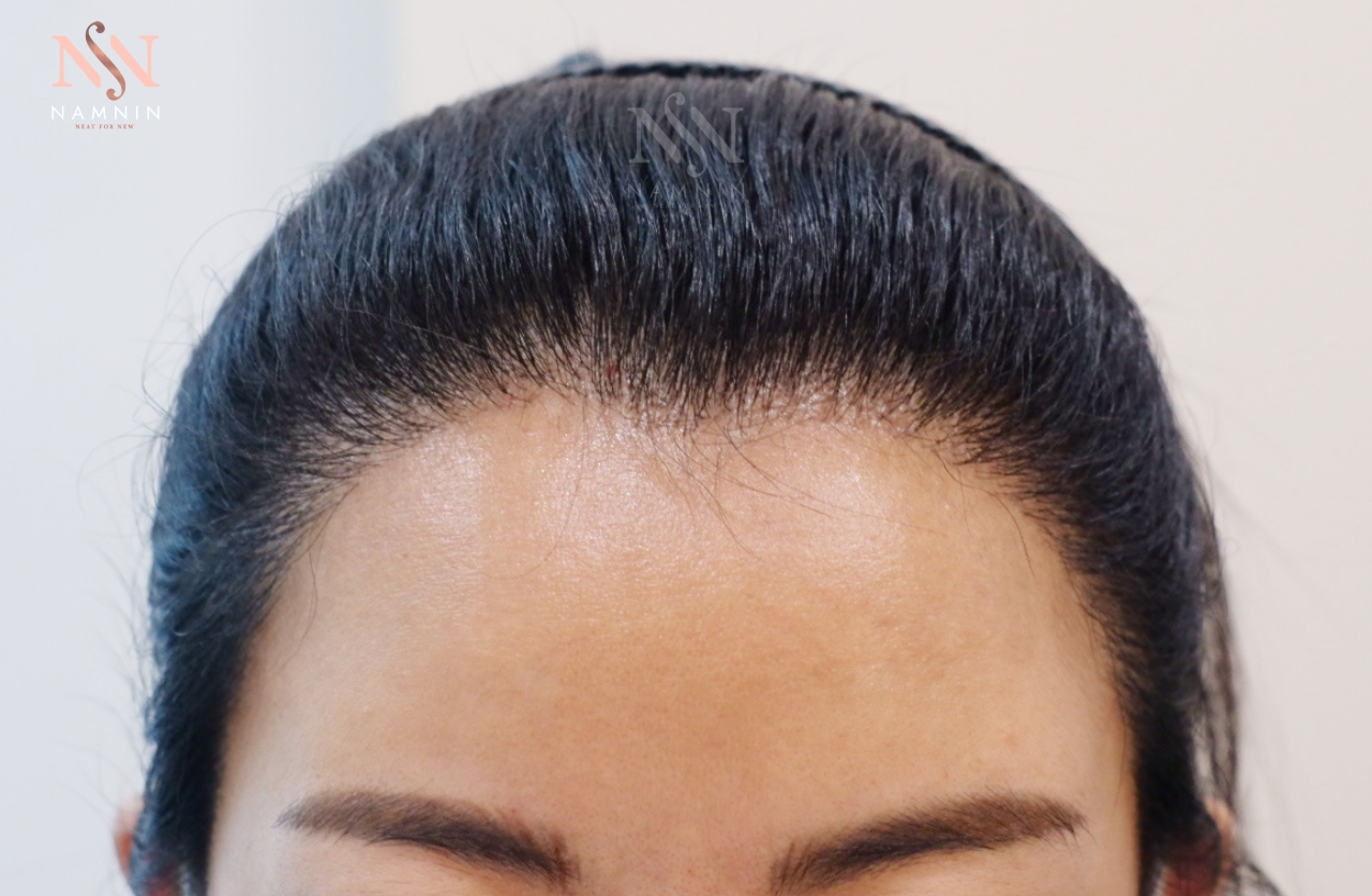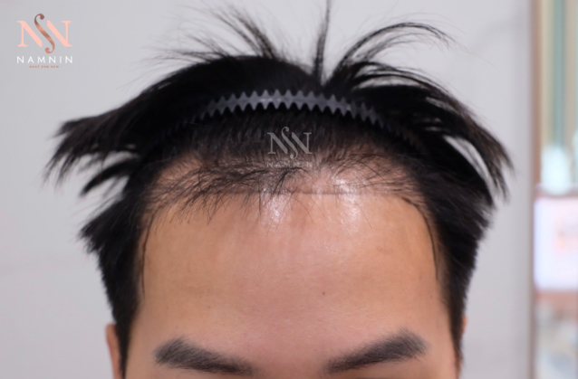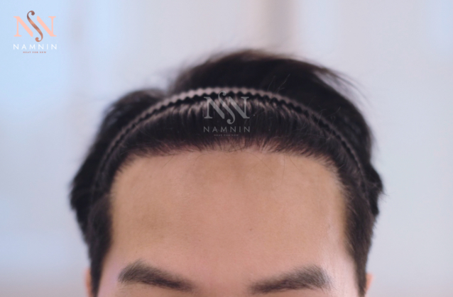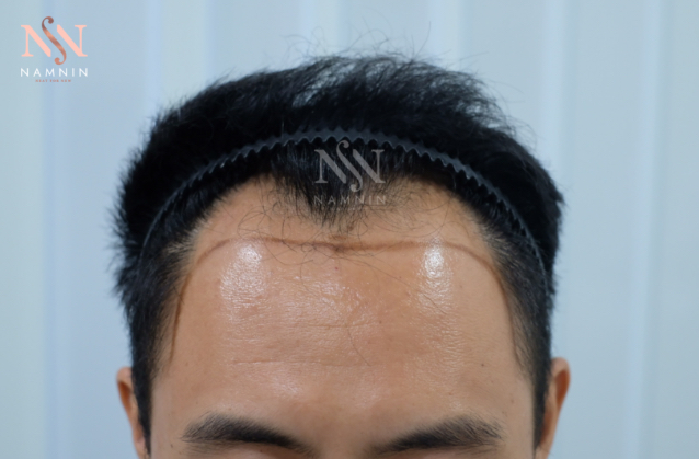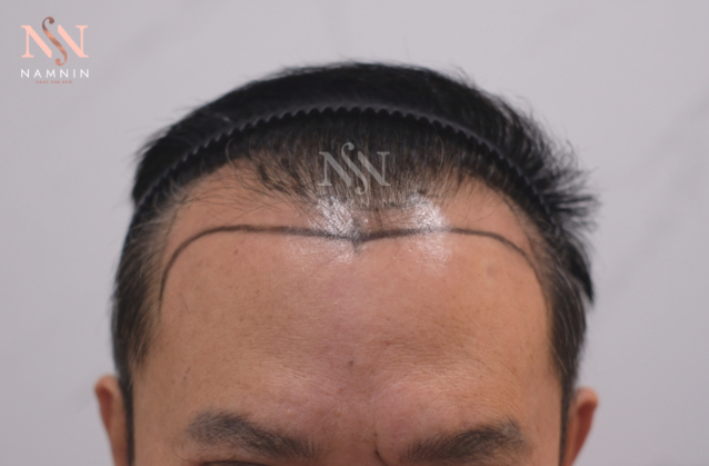 In this case, the patient faced an unbalanced hairline, which led to the decision to undergo a second hair transplant using the NEAT technique. One year later, the result is a more harmonious and defined hairline, with new hair strands growing in the same direction as the original hair.